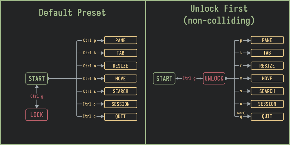 As of the new release, you can configure #Zellij to start in "non-colliding" mode, where you hit C-g and then whatever combo for panes, tabs, etc. Possible before, but much fiddlier.